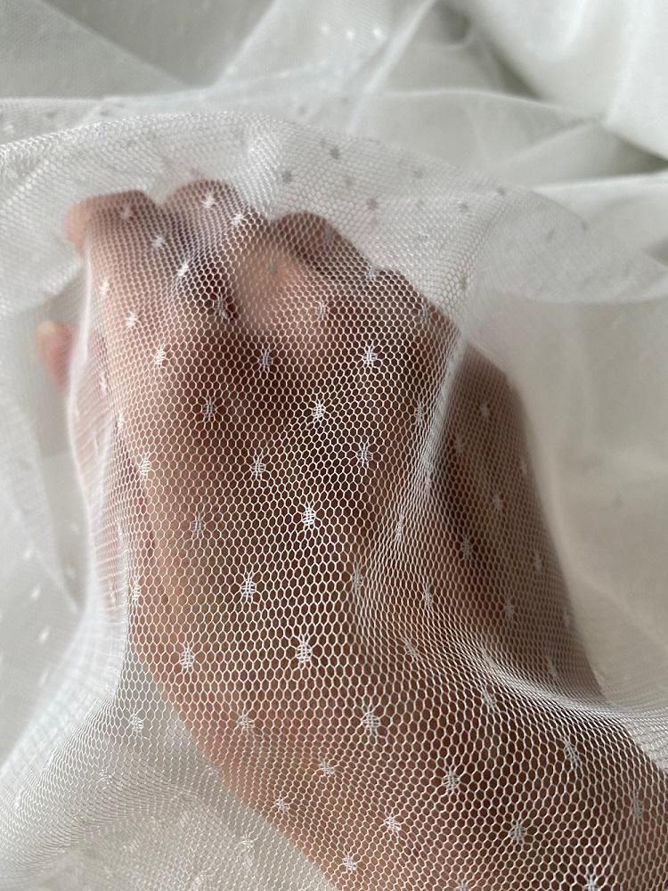 ハリはあまりなく、ふんわり柔らかいドットチュール。